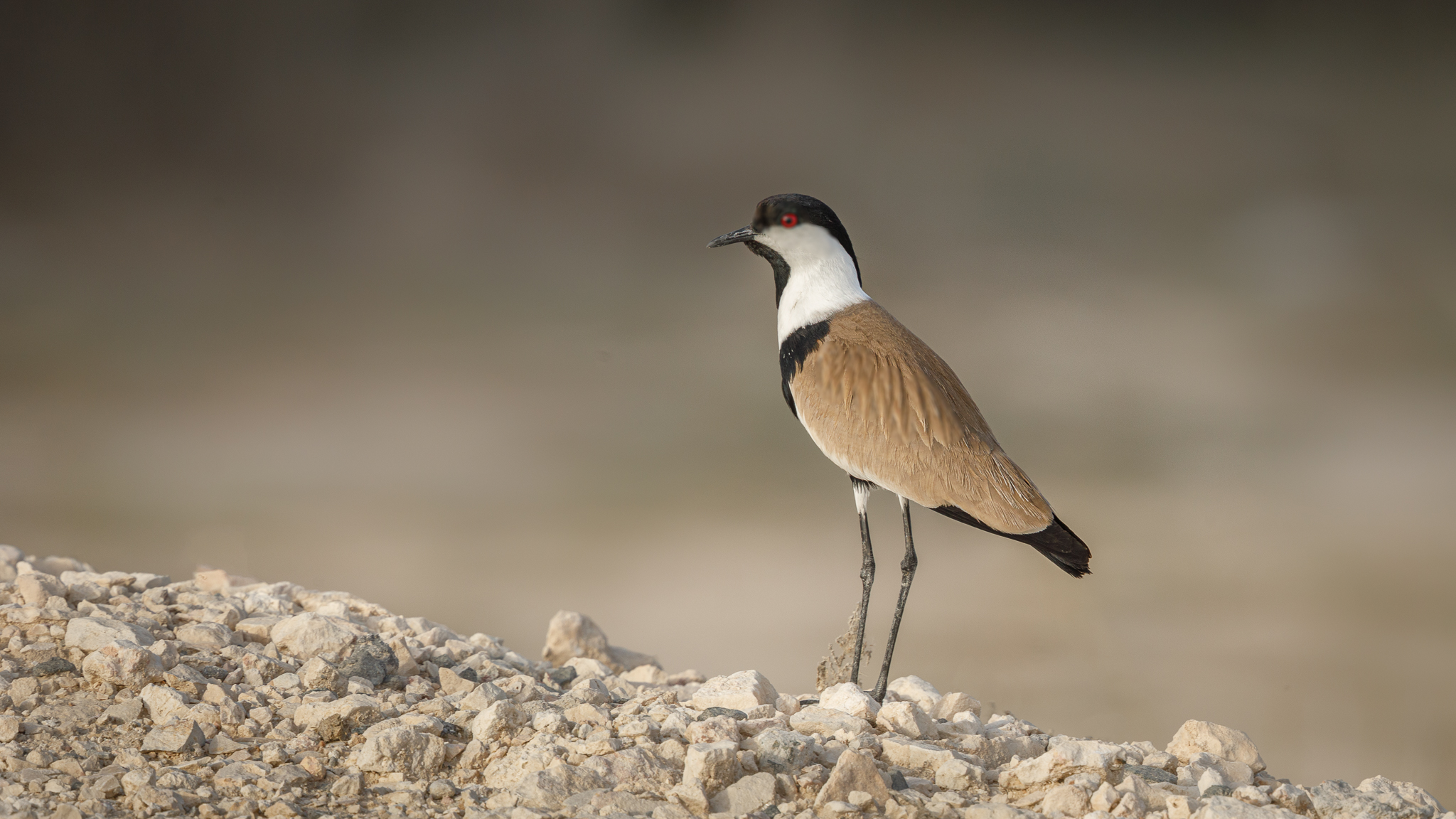 Spur-Winged Lapwing Vanellus spinosus One at West Saliyaon 17 March2020(Sh. M al Thani) , with three at the same location on 10 April (G Farnell) Two were on the Shamal Coast 17 April (G Farnell). Ninth record.